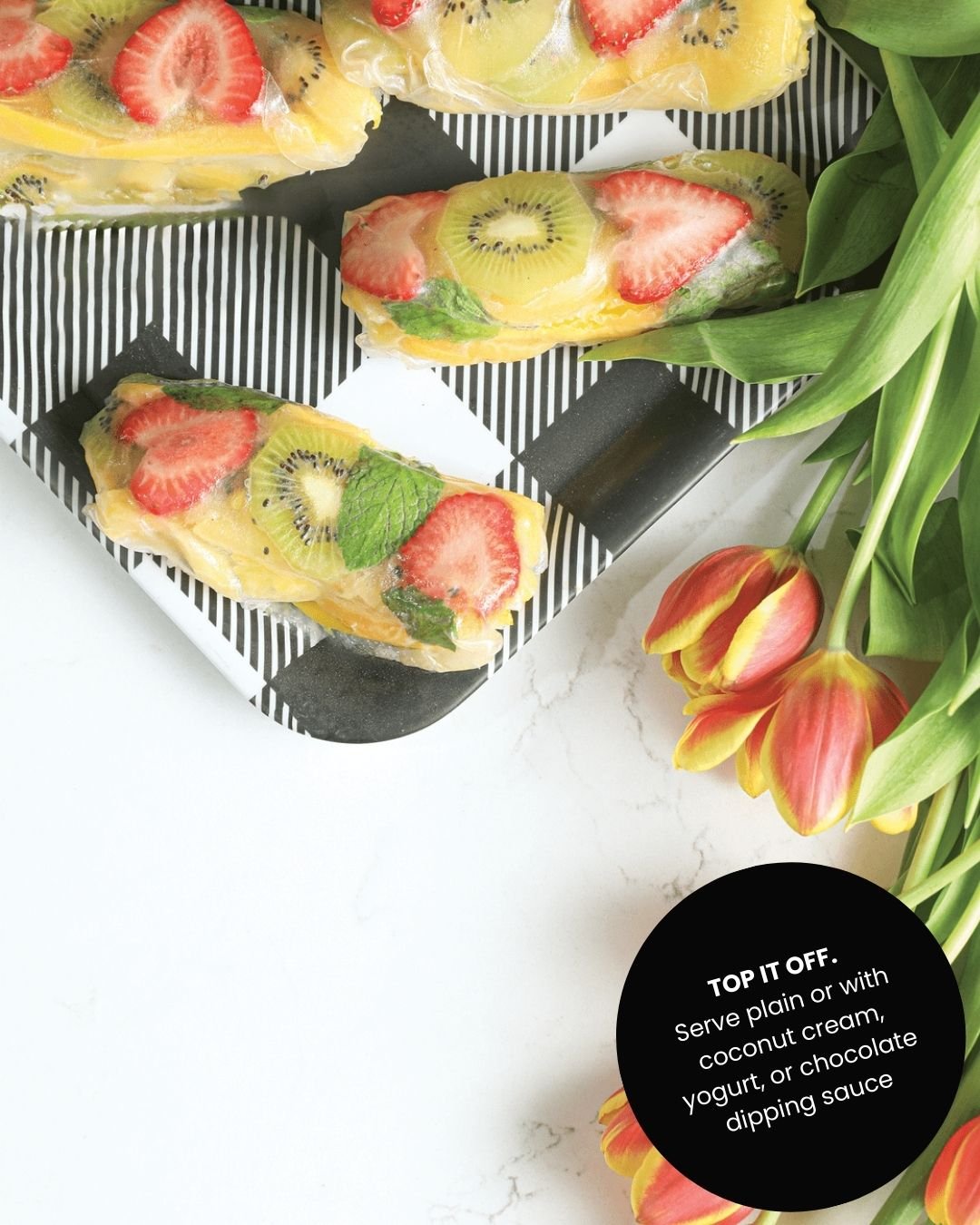 - 2 kiwi, green or yellow, peeled and sliced (12 slices per kiwi)