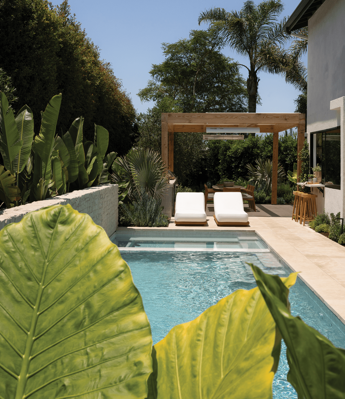 Tropical landscapes might not be a common request for Garden Studio Design, but this one gave the luxury landscape design/build firm a chance to rise to the challenge. “This project was an opportunity to showcase how layered design and intentional planning can transform a small backyard footprint,” says Chris Fenmore, principal designer. “We pushed ourselves to bring in unique touches, lifestyle elements, and functionality—all tailored to our client’s site-specific needs—to create a space where every detail works in harmony with the way they live.”